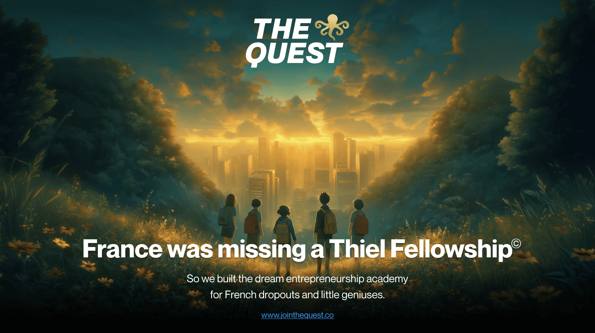 En rejoignant les investisseurs de THE QUEST, vous accédez à un dealflow unique de dropouts et builders atypiques de 17-27 ans.